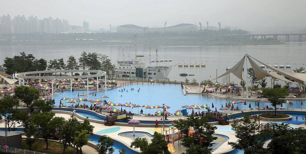 Han River Park 不只是可以在这里散步、骑脚踏车,大家可能不太知道的,其实很多 Han River Park 也有户外游泳池呢,受不了夏日,又想养眼的朋友们,不妨来 Han River Park 的游泳池碰碰运气吧。