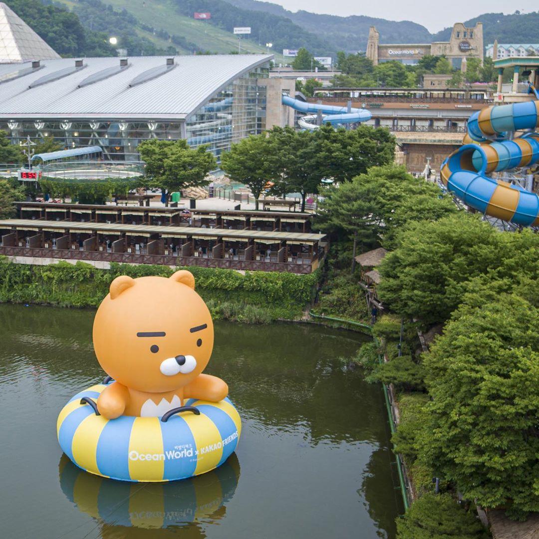 除了比较和缓的游泳池之外,比较特别的水上活动还有哪些呢?不得不提到深受首尔人喜爱的水上乐园「Ocean World」,在2019年的夏天要推出巨大的莱恩Ryan摆设啦!