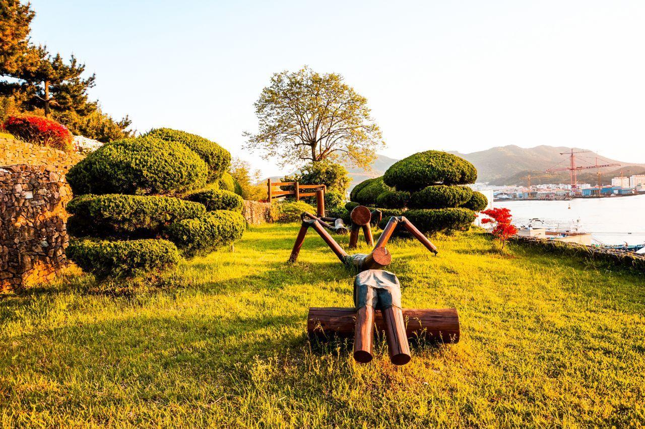 来这里的人并不多,慢慢地走,可以享受一个人思考的时间,也很适合来场浪漫的约会。若是来到统营旅游,刚好有去东崖壁画村,不妨也过来南望山雕刻公园,欣赏夕阳落下,阳光洒在海面闪闪发光的奇景吧。不管是上山,或是沿着山脚慢慢绕湾澳一圈,都可以看见美丽的光景。