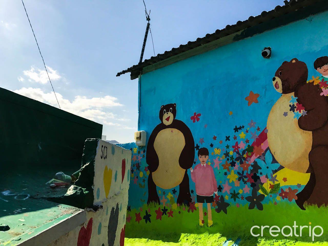 西陂浪是韩国著名女作家:朴景利的故乡,也是她小说里描述的背景,不少文学迷都会把这里当作圣地来参访。虽然西陂浪的壁画比东崖壁画村少,但是这里标榜的是色彩鲜艳以及充满文字,具有浓厚故事感的村庄。