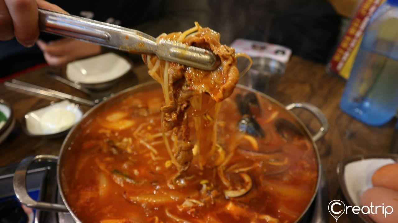 这间金刚部队锅虽然是连锁店,但所有分店当中最有名的还是在西面的这一家。金刚部队锅之所以有名,是因为虽然韩国的部队锅一向以重辣重咸闻名,但是这间店的部队锅比较没有那么咸,甚至是不吃辣的人,也可以在这边点不辣的部队锅吃