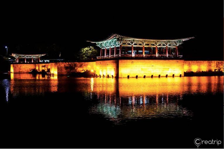 为了欣赏庆州夜景,有一个景点是一定要去的,那就是'东宫与月池'