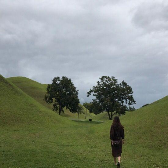 在房子与房子间竖立的古坟,每次看到这种景观都觉得这应该就是Gyeongju独有的氛围吧