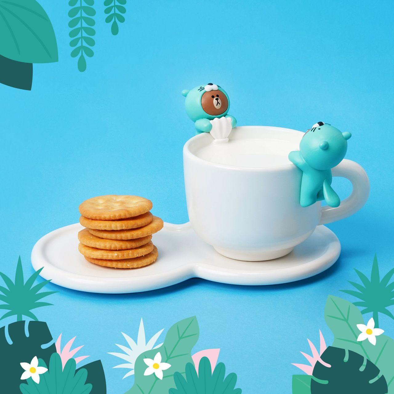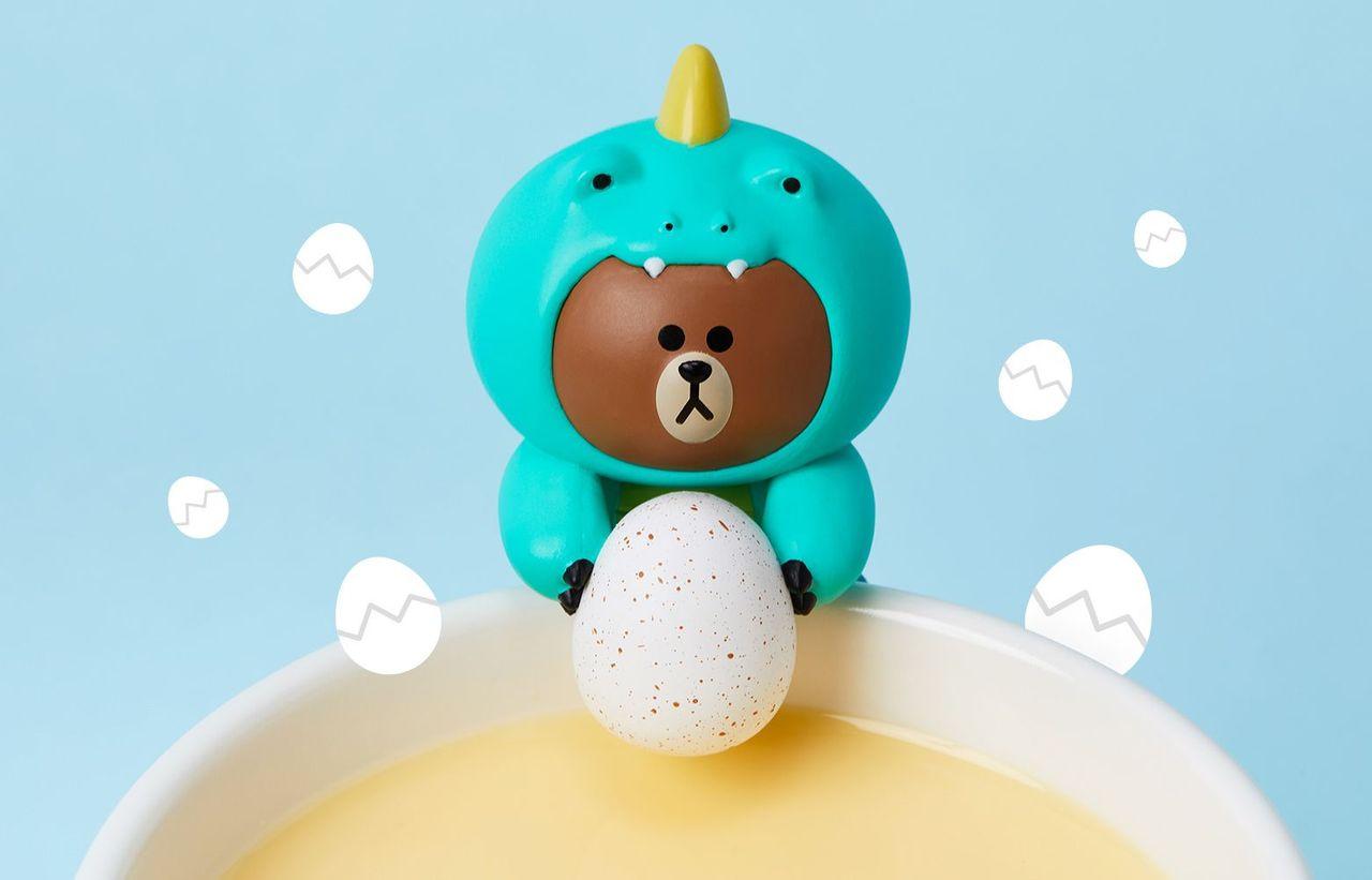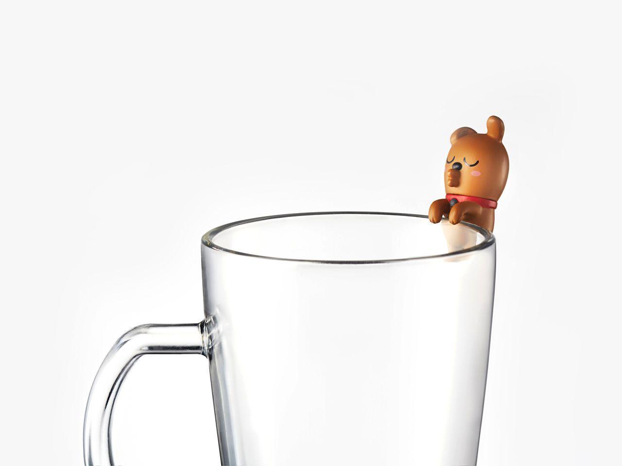 另外两款则是海獭跟恐龙。别具巧思的,LINE FRIENDS的熊大系列杯缘子,手上都抱着不一样的可爱小物。萌萌的变装,加上熊大一脸无所谓的脸孔,真的是难以抉择要买哪一款呢。