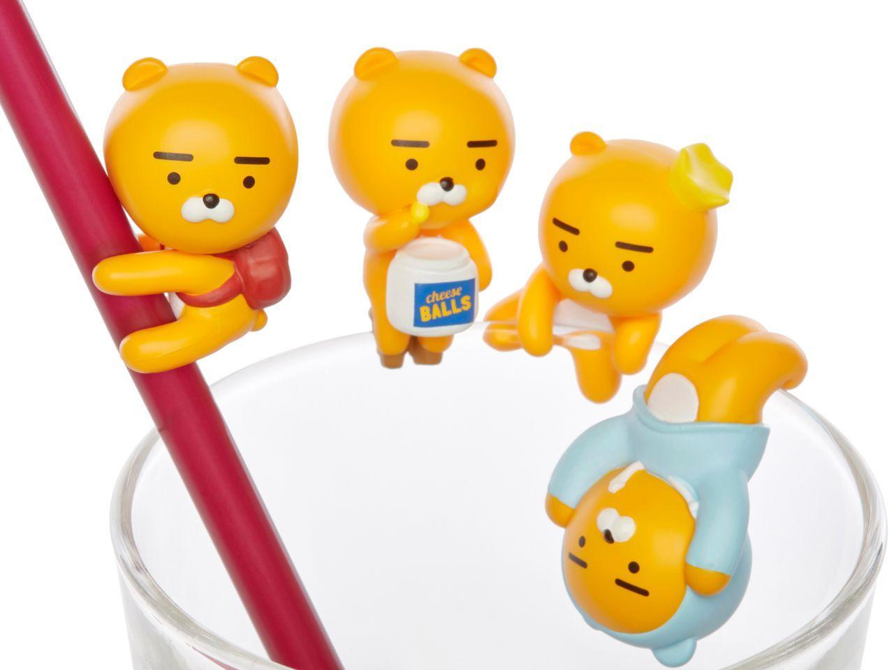 先打出头阵的KAKAO FRIENDS莱恩杯缘子,一共有四款,价格都是₩6,000,是不是轻松、好入手呢?小编最喜欢倒吊的RYAN,还有可以爬在吸管上的,是不是非常可爱呢?