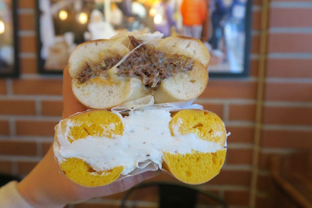 贝果三明治很有饱足感,适合当作早餐或是午餐,也因为面包密度,吃起来松软又富有弹性,搭配份量超多的肉品及蔬菜,是个健康又满足的一餐。