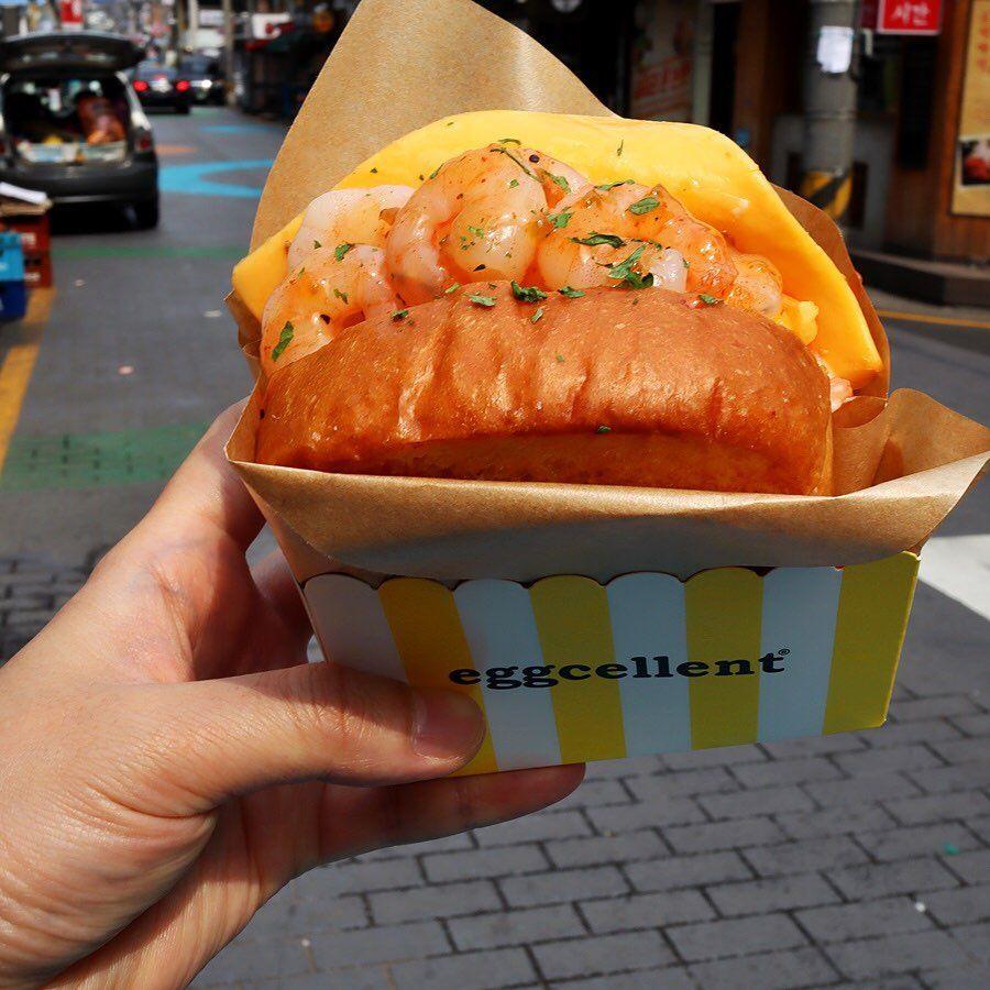 在江南一带也小有名气,eggcellent吐司里面不只有夹蛋,而是夹了又大又饱满的虾子!是不是光想,就让人口水快要滴下来了呢?首尔各地可是开了越来越多分店呢。