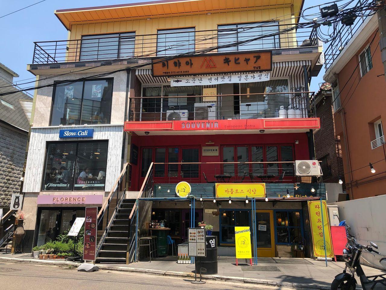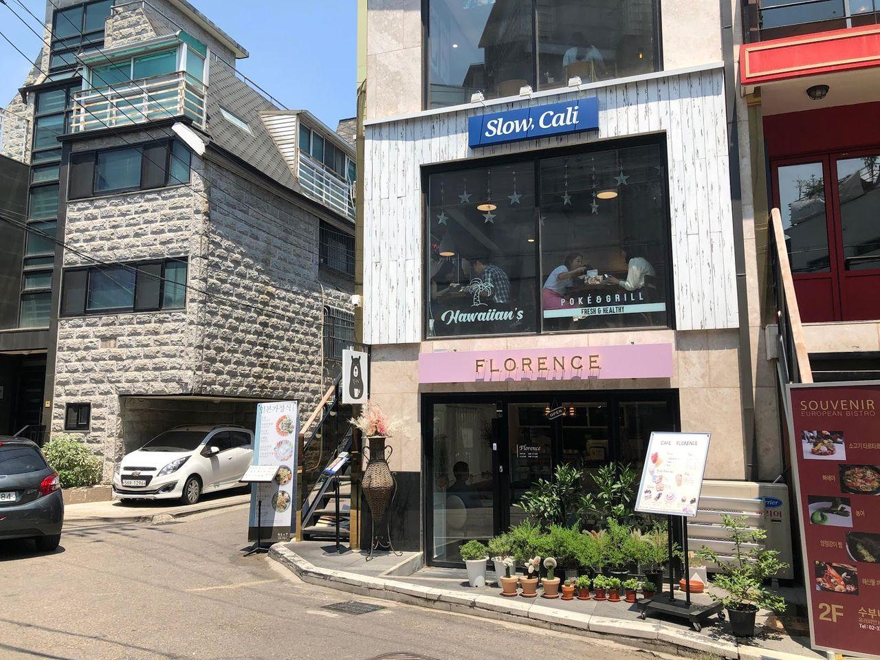 藏身在延南洞的小巷中,远远地就可以看到上面图片超显眼的建筑,走左手边的楼梯到二楼,就是小编私藏的延南洞美食餐厅「Slow, Cali」。