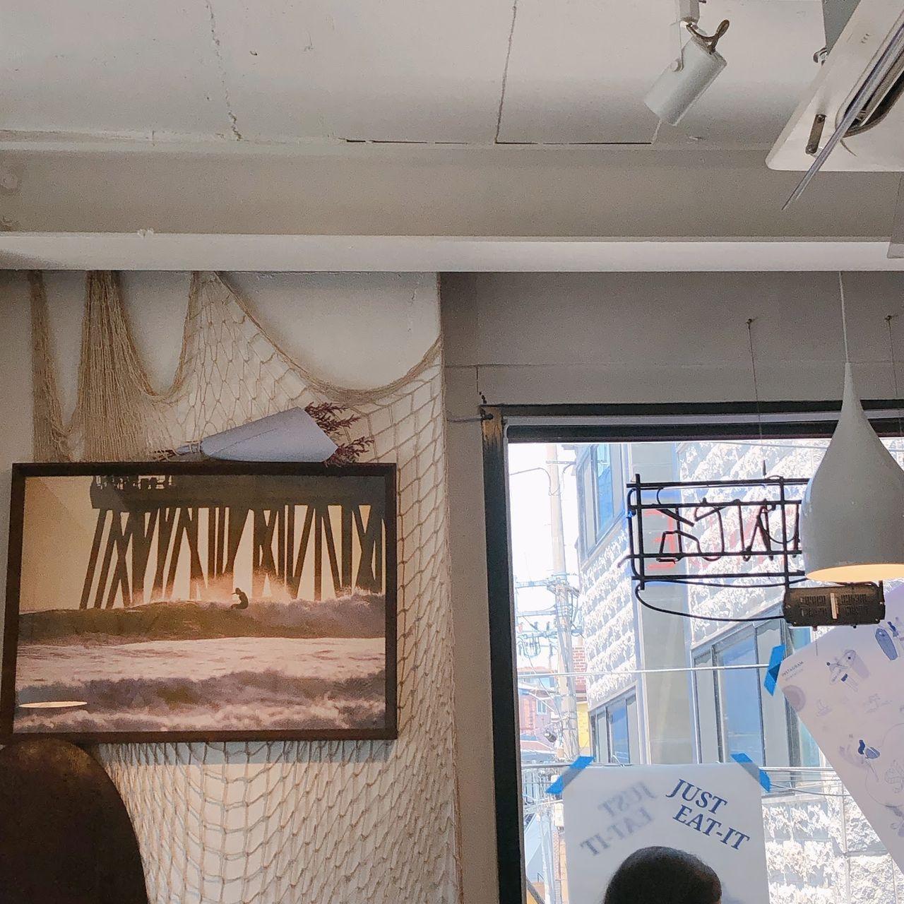 和店名一样有着慵懒的感觉,店内空间不大,但两面落地大玻璃和充满美式海滩风情的布置,让人有舒适的空间可以边吃边聊天。