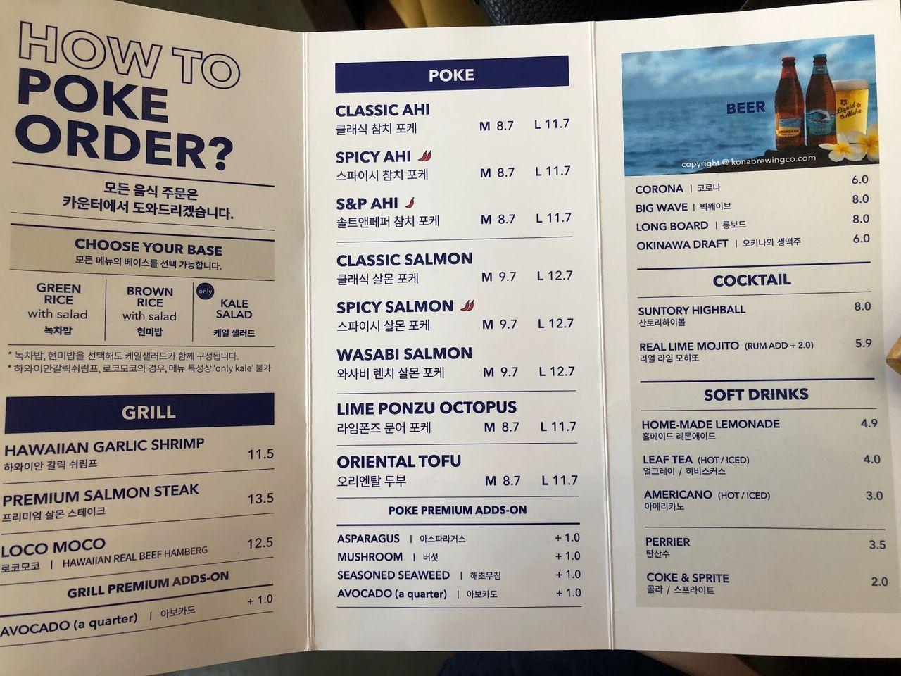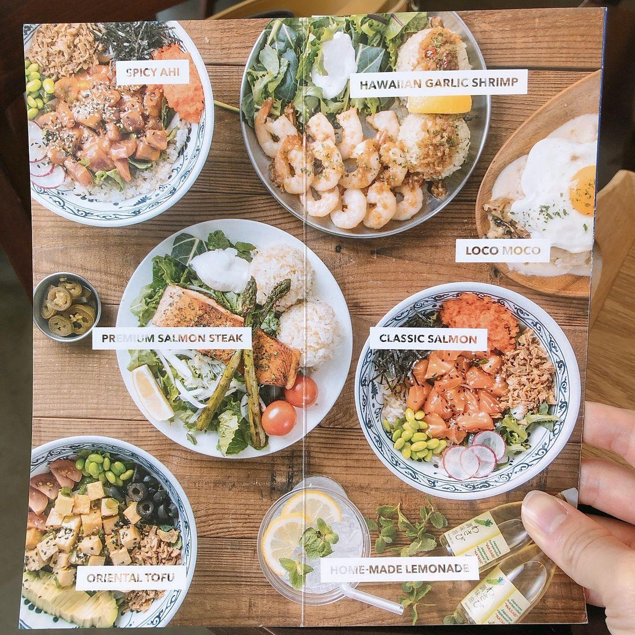 菜单选择主要分有「Grill(烧烤)」和「Poke(盖饭)」两类,选好后再选谷物类:蔬菜饭、玄米饭和沙拉,便到柜台付费,店员很快便会为各位送上餐点。