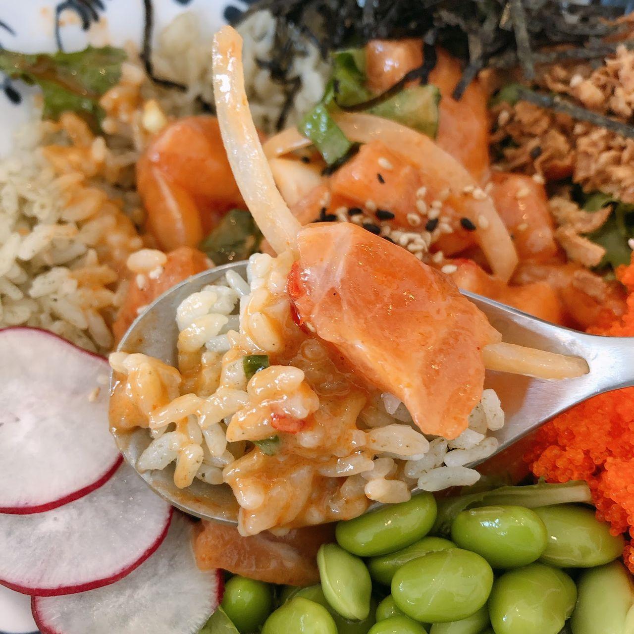 小编点了辣味鲑鱼绿茶饭(SPICY SALMON)犹如彩虹饭一样,卖相非常吸引人,来这间延南洞美食,小编真的没有点错!