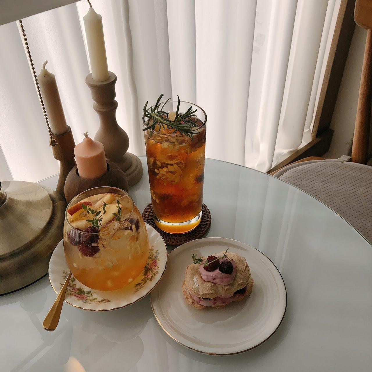 另外,这杯「作党谋议红茶(작당모의 홍차)顾名思义就是红茶基底,同样也很适合夏天的味道。最重要是里面超多苹果粒!苹果爱好者不能错过!