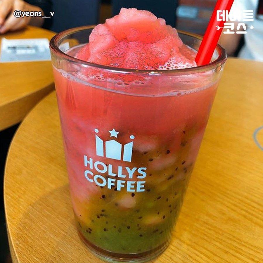 Hollys coffee推出的西瓜奇异果冰沙,跟贡茶不一样的是,Hollys coffee的西瓜绿色果皮是用奇异果做成的,标榜著就像吃西瓜一样的感觉~是夏日解暑的好伙伴。