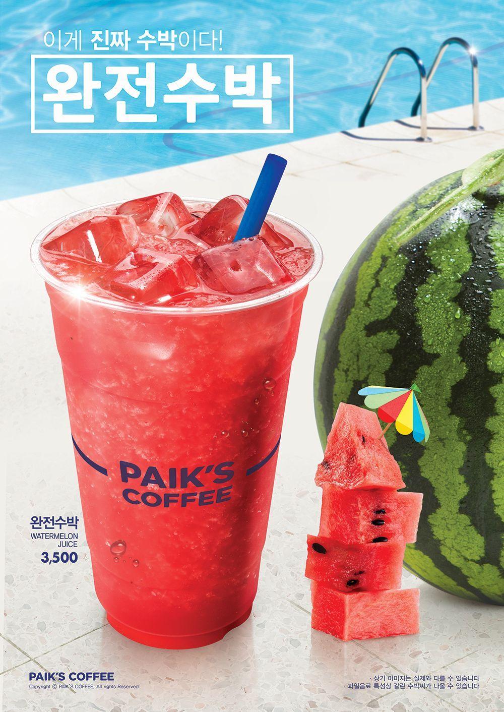再来就是说到连锁咖啡厅就会想到的:paik's coffee!白种元主厨的西瓜汁,每到夏天就会有人在期待,价钱只要₩3,000,就能享受到整颗西瓜打成汁的果汁,夏天就是要来一杯。