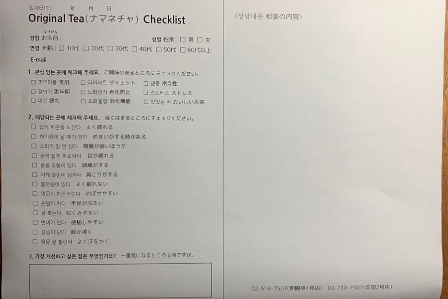一开始先填选问卷,了解自己的身体状况与想要改善的地方后,店员会跟你解说这些症状,以韩方的角度来看,会是怎样的成因,感觉就像是在看心理咨商和中医呢。