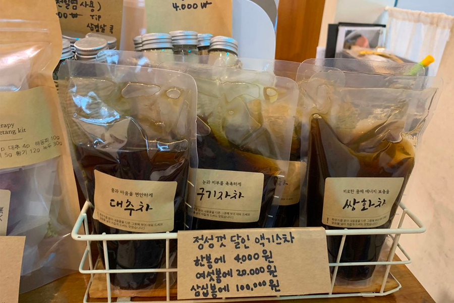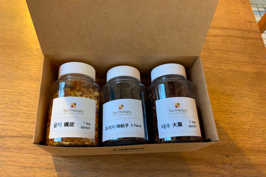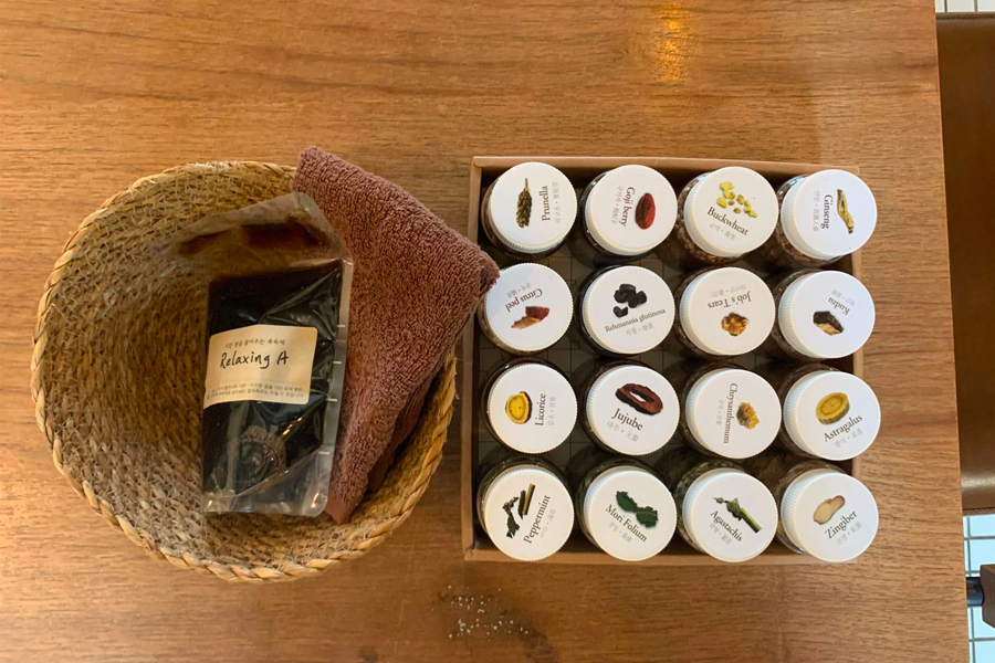 约10至20分钟的咨商后,店员会帮你挑三种药材,来制作专属于你自己的韩方茶。