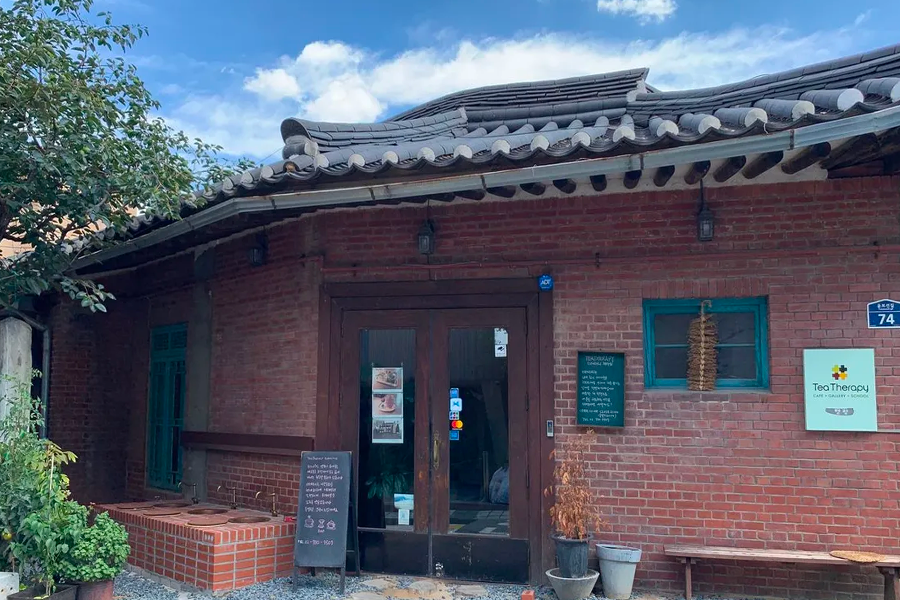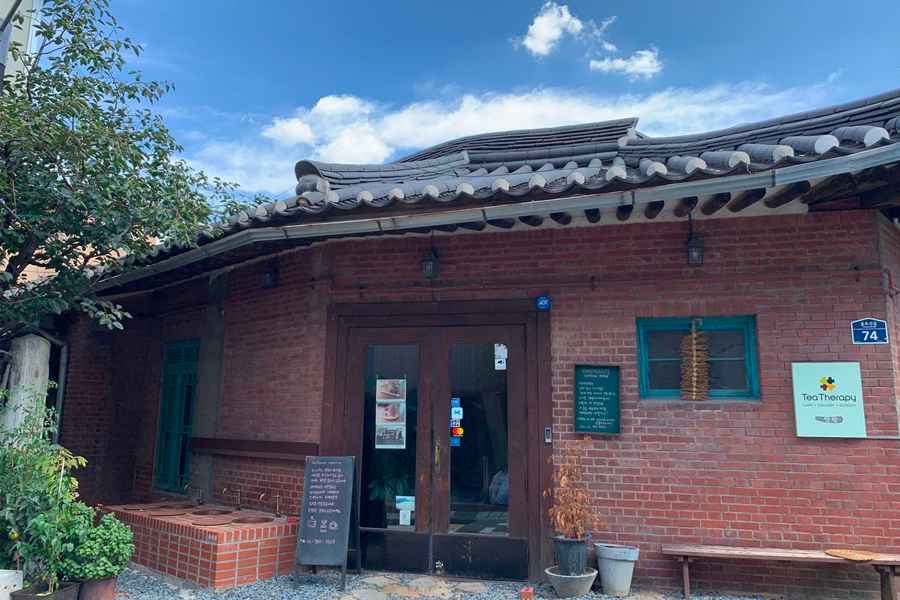 - 小撇步:首尔地铁3号线安国站(안국역)1号出口出来后往右走,在街角右转,一路直走到底部的T字路口,往右边方向走,看到红砖建筑就抵达Tea Therapy(详细路线图参考文末)。