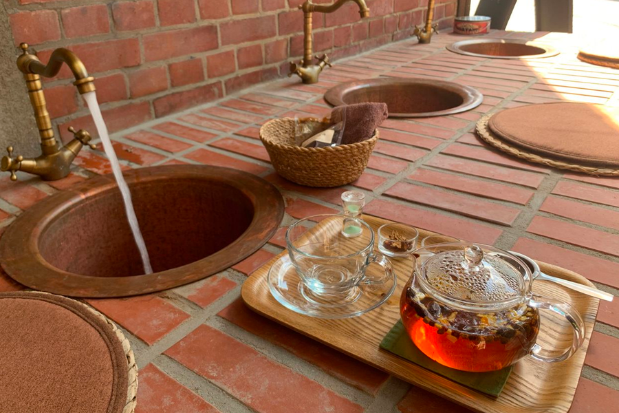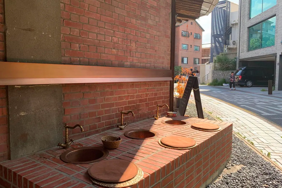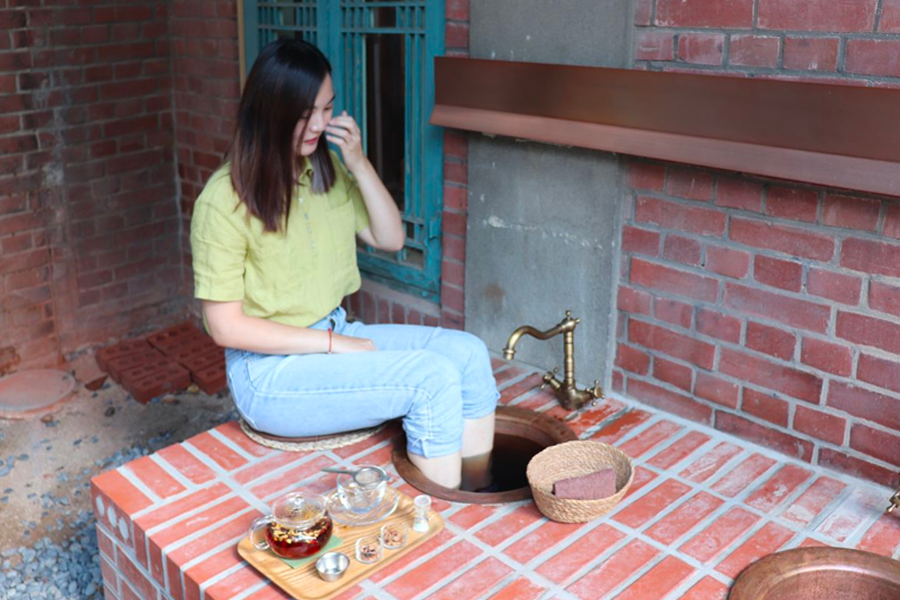 而足浴场所则是在室外进行,天气好的时候在这里坐著足浴,顺道配著一壶韩方茶,简直是人生一大享受。