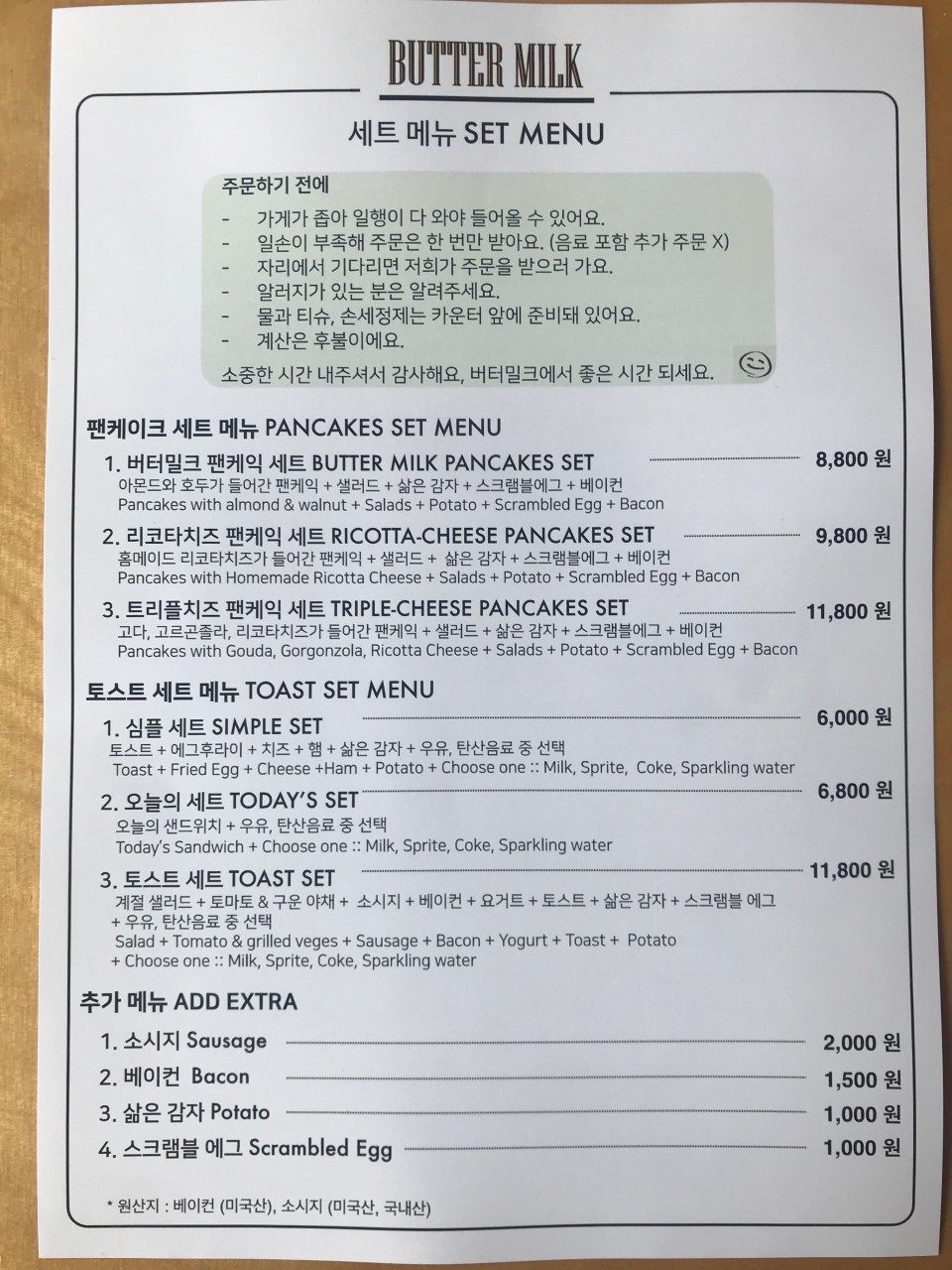 等待期间,大家可以先看Butter Milk的菜单,都有英文标示。