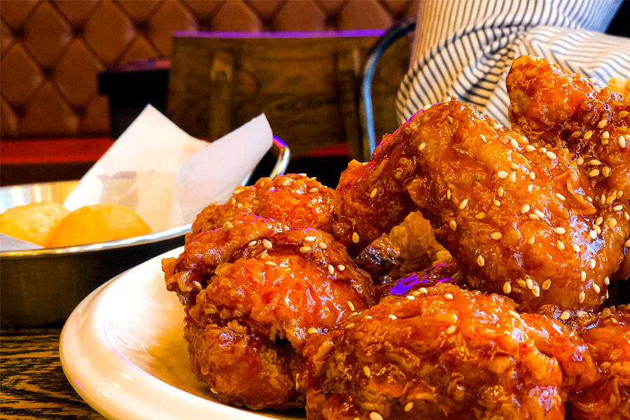 酱料炸鸡的味道也非常好,小编真心觉得发明酱料炸鸡的人,应该上辈子拯救了韩国……在酥脆的炸鸡中适当、均匀地倒入调料,让每一寸鸡肉都沾满酱汁,香气更加充足。