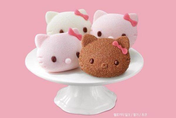 主打的Hello Kitty松糕有牛奶,草莓还有巧克力口味