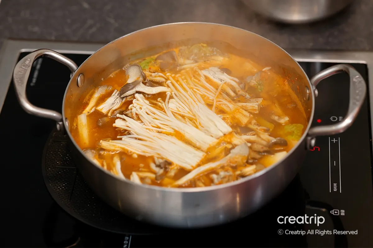 新鲜肉片与蕈菇在辛辣汤底中涮煮的韩式涮涮锅,以实惠价格就能享受满满的饱足感,点餐后现切的新鲜肉品,保证每一口都鲜嫩多汁,与事先处理的冷藏肉相比更能感受到食材的真实美味。