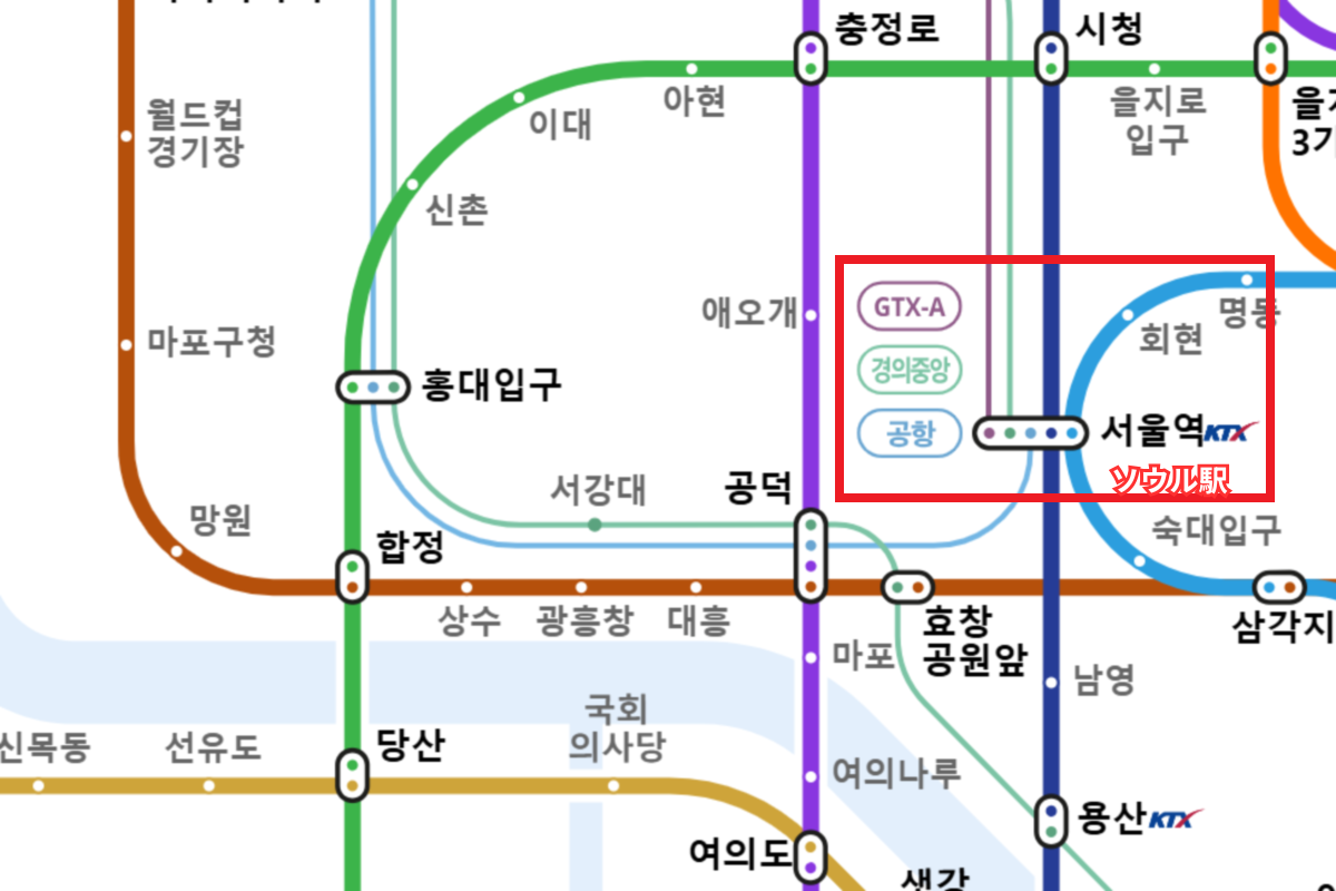 もし宿泊先がソウル駅や弘大入口駅の近くでない、また空港リムジンバスの利用にも不安がある場合は、地下鉄をうまく活用するのがおすすめです。