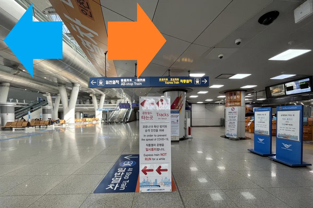 空港鉄道には、仁川空港からソウル駅まで一気に到着できる直通列車と空港までの駅1つ1つずつ停車する一般列車の2種類があります。