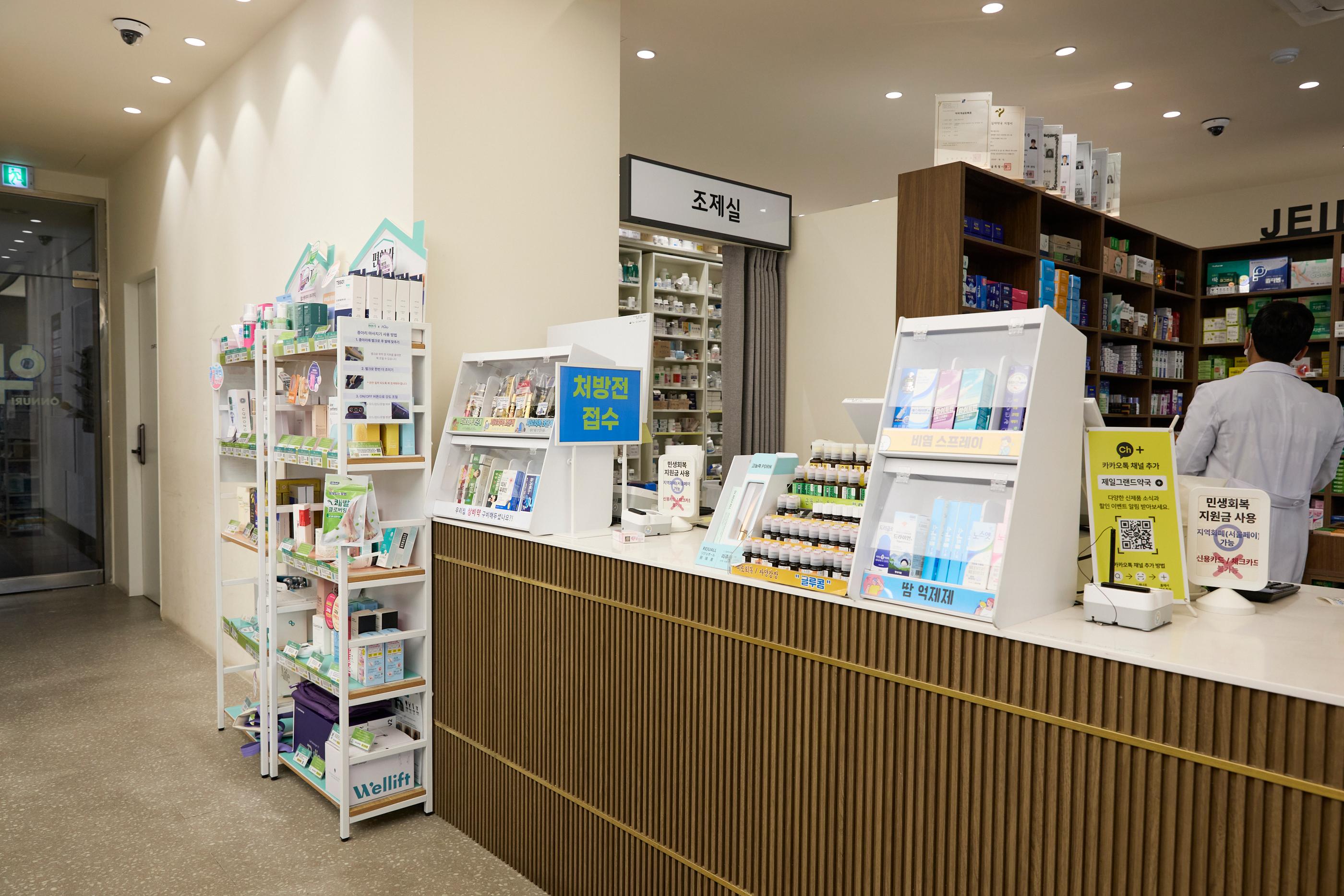 江南駅9号線と新盆唐線が通る新論峴駅3番出口の目の前にあるJEIL GRAND薬局は、江南駅近くの24時間営業薬局で、いつでもK-ビューティー製品、サプリメント、旅行必需品を購入できます。深夜も利用可能な江南の代表的な薬局です。