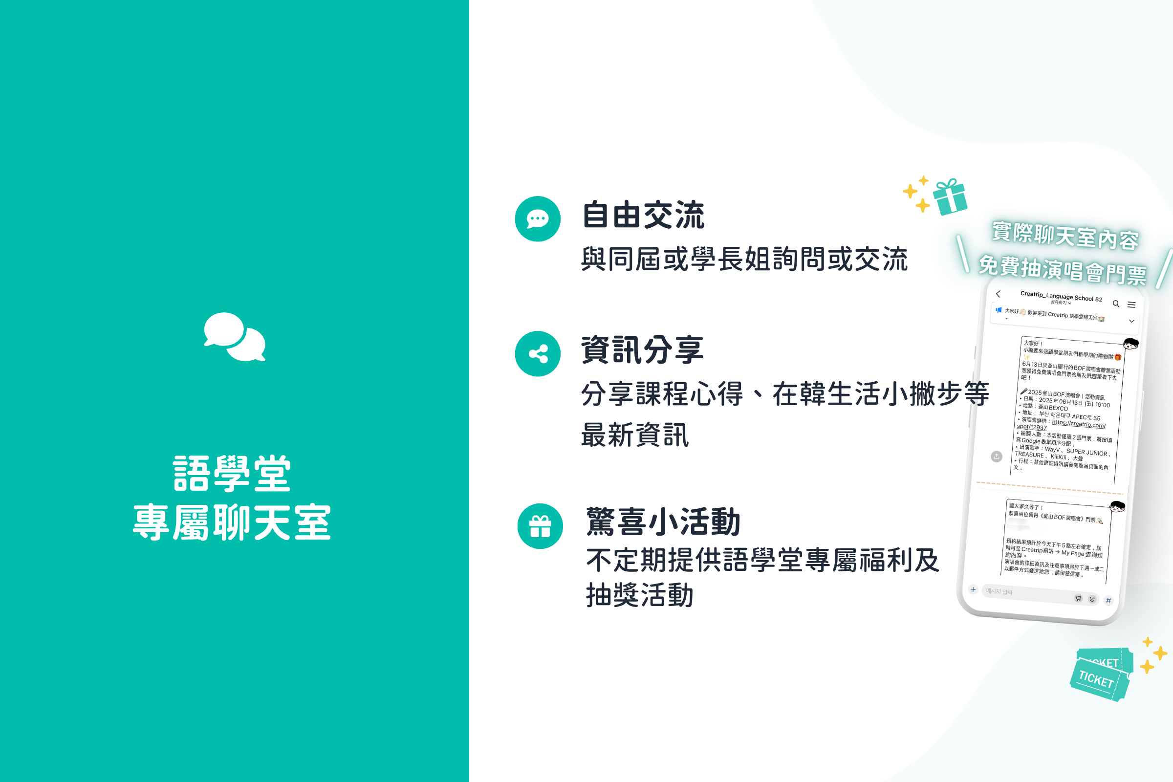 像是 「抽免費演唱會門票」 這種福利,僅限Creatrip語學堂用戶參加,趕緊把握機會吧!
