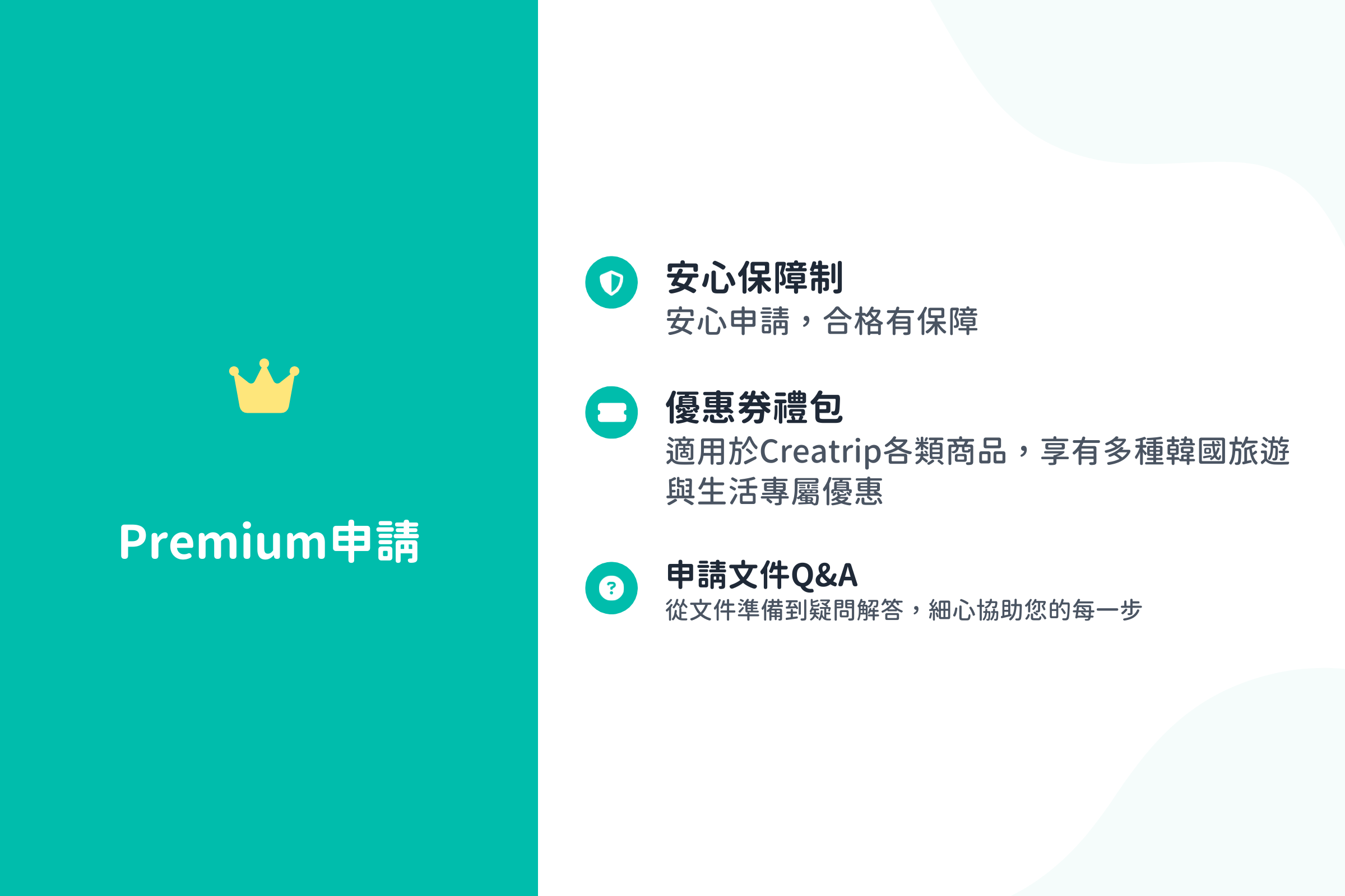 如果你想提高申請的保障,或是申請成功後,還能用更優惠的價格購買Creatrip商品,那你一定要試試Premium申請功能!