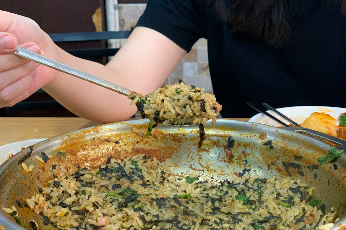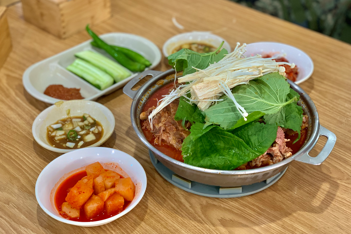 小菜也不只有一般的萝卜、泡菜,而是提供白泡菜、腌鱿鱼、海鲜酱等多种选择,也会随餐提供一碗配料满满的泡菜汤,香浓不死咸。