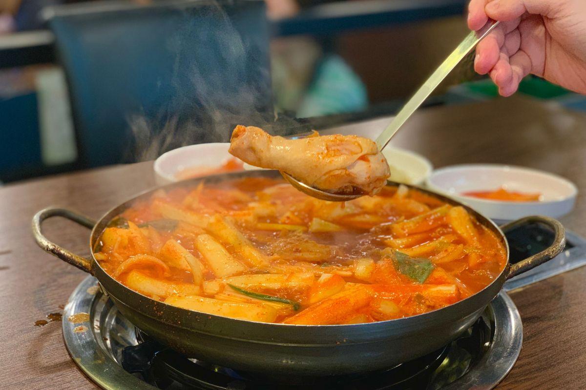 我们点的是3人份年糕辣鸡汤,里面有很多年糕、鸡肉跟马铃薯,份量其实很够,另外根据个人喜好可以加点年糕、泡面、或最后来个炒饭。