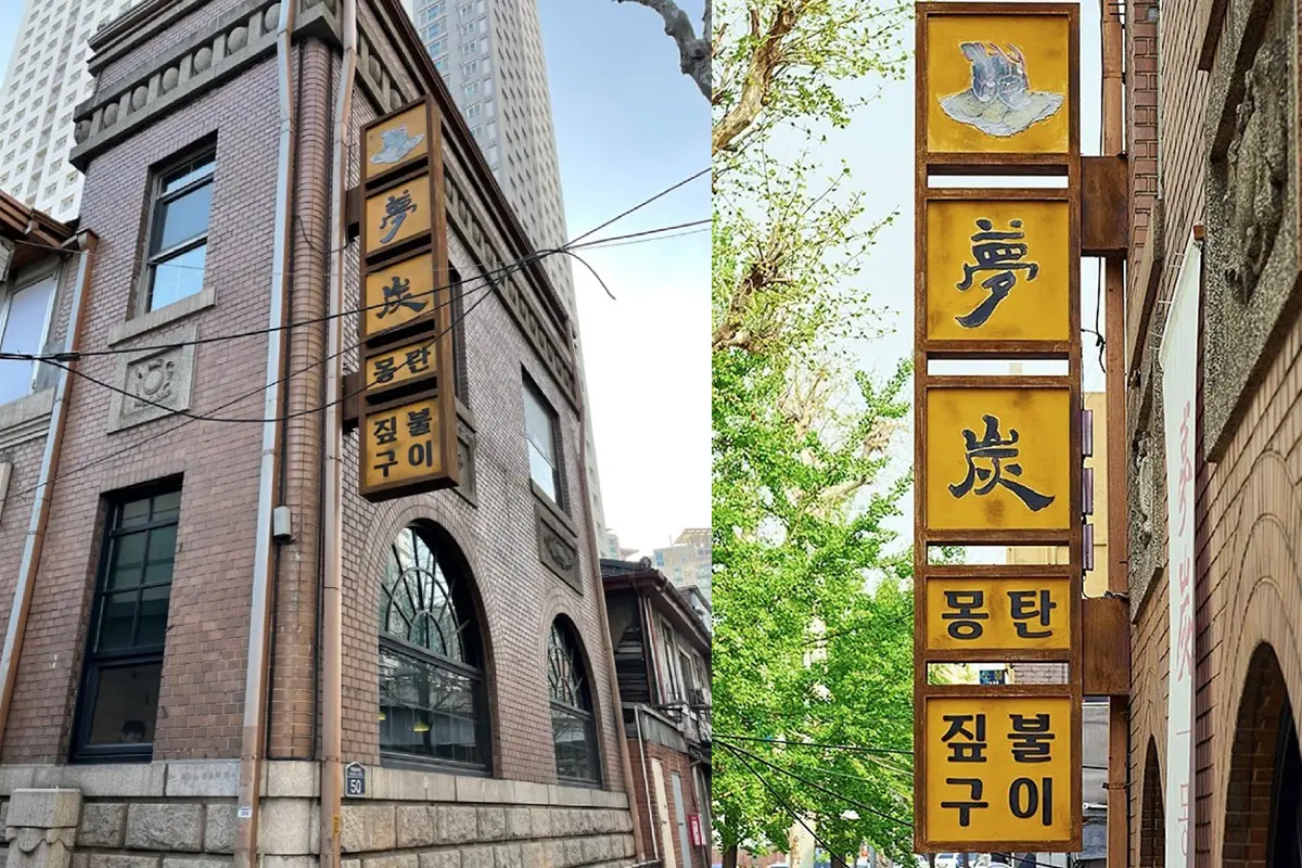 位于梨泰院一带,在三角地站(삼각지역)8号出口前方的「梦炭」,建筑外观走旧式殖民时代风格,非常显眼。